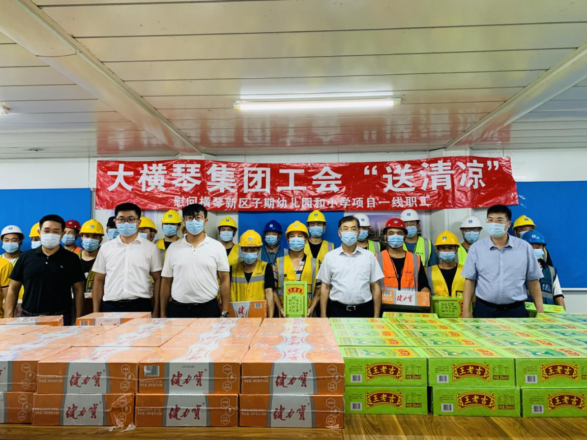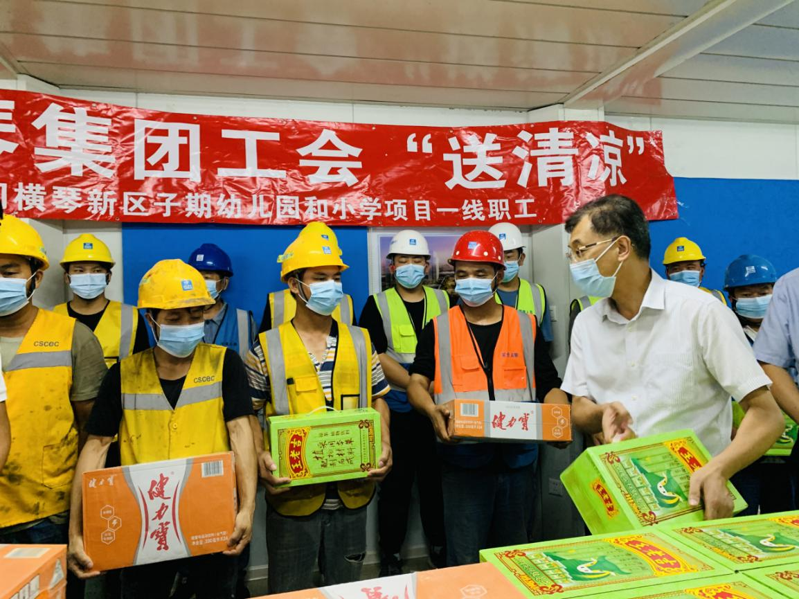 為進一步加強高溫作業職工勞動保護工作,關愛堅守在項目一線的建設者,2021年7月,大橫琴集團黨委書記、工會主席田偉帶隊分別赴科學城(二期)標段一、標段二項目、橫琴醫院項目、橫琴新區子期幼兒園和小學及保稅一小工程項目開展夏日送清涼慰問活動。