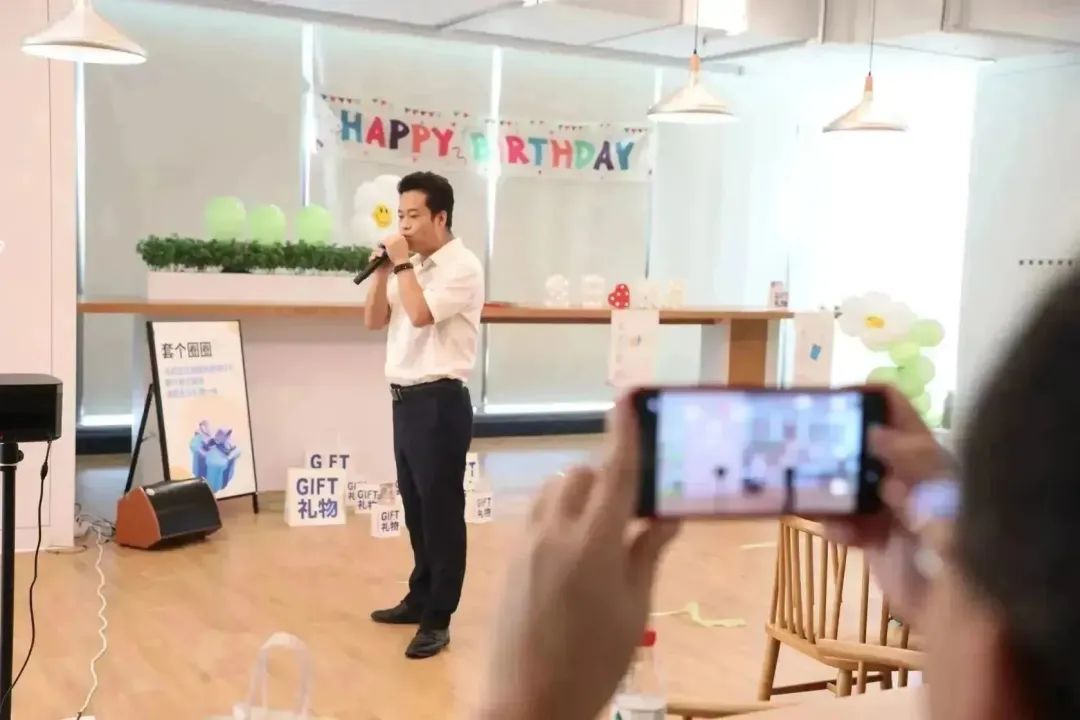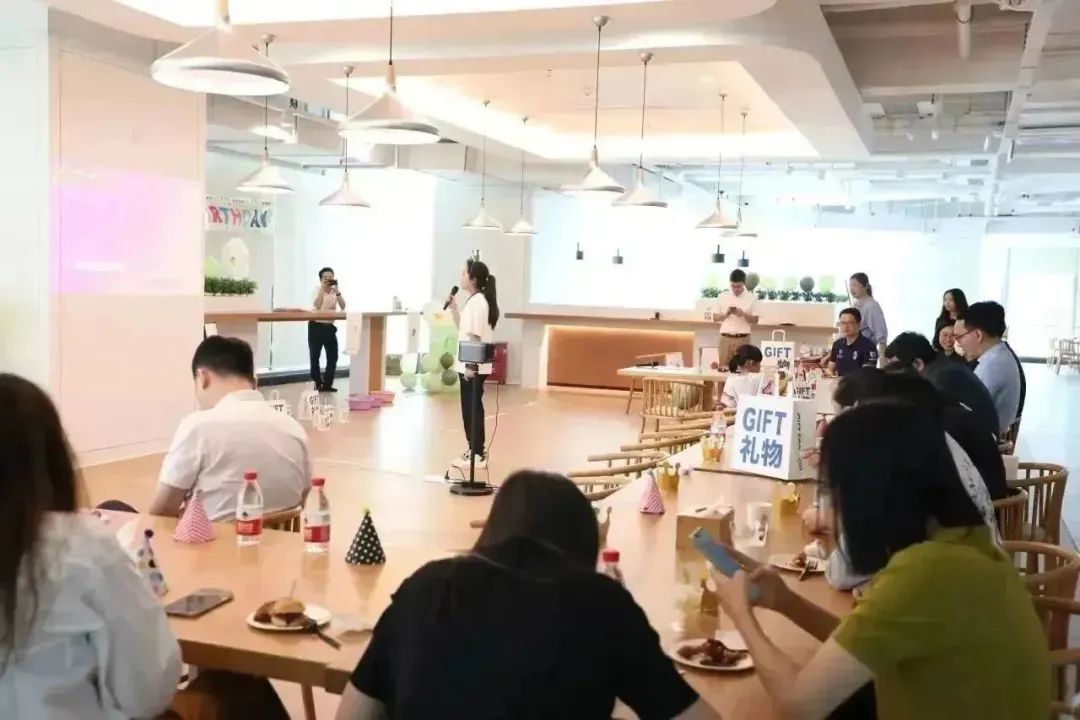 生日會(huì)上,暖場(chǎng)歌曲表演、聽聲辨人等游戲節(jié)目輪番上演。在愉悅的氛圍感染下,大家打開了話匣子,暫時(shí)卸下了工作的疲憊與壓力,現(xiàn)場(chǎng)其樂(lè)融融,一派歡聲笑語(yǔ)。生日會(huì)的尾聲,在主持人的邀請(qǐng)下,所有壽星一起走到臺(tái)前切蛋糕,在舒緩生日快樂(lè)歌的圍繞下,許下自己美好的生日愿望。