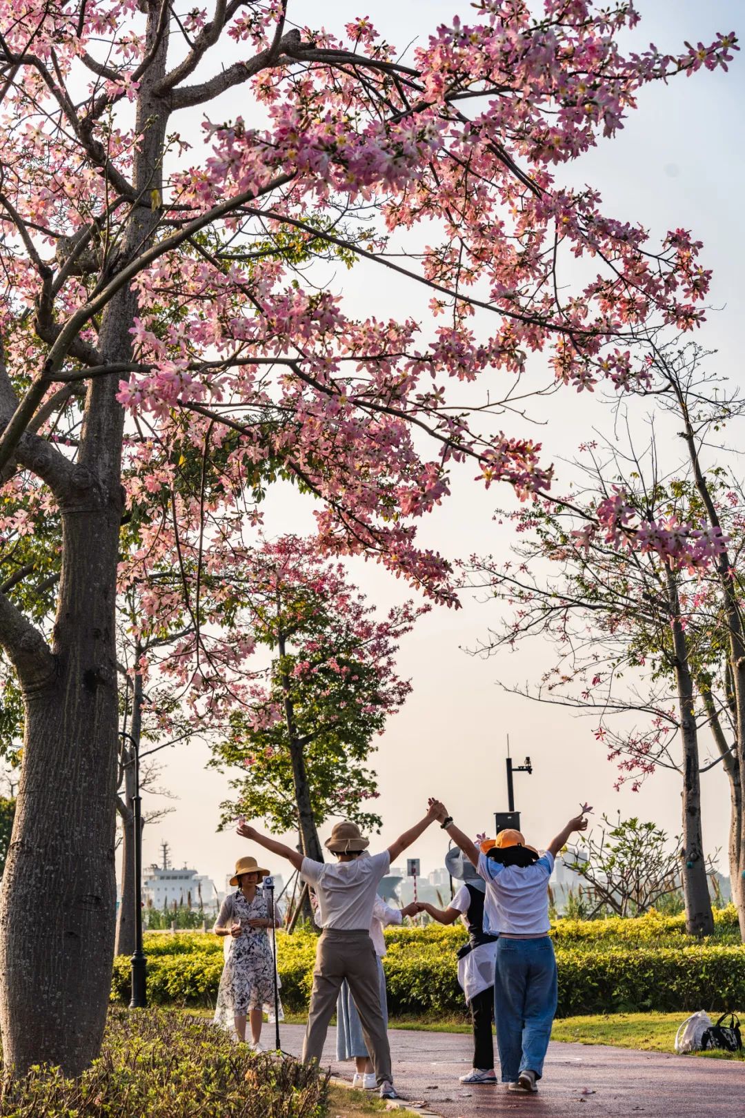 每年立冬前后,告別春夏雨季的橫琴花海長廊便迎來了她一年之中最美麗的季節——美麗異木棉盛花期。絢爛的粉色花海以飽滿、茂盛、茁壯的姿態展現在市民游客們面前,海岸四處洋溢著浪漫與溫馨。