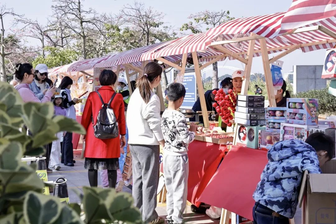 除此之外,每逢周末,一號、二號和三號驛站開展東灣墟市活動,斗門蓮洲鎮東灣村農產品市集走進花海,帶來優質的本地產綠色農產品、特色手工糖水和農副產品、非遺點心小吃等,吸引了大批市民游客上前詢問和購買。游客在享受美景、體驗美食之旅的同時,亦促進了鄉村振興與滿足城鎮消費需求的良性循環,鄉村市集在花海煥發出了新活力。
