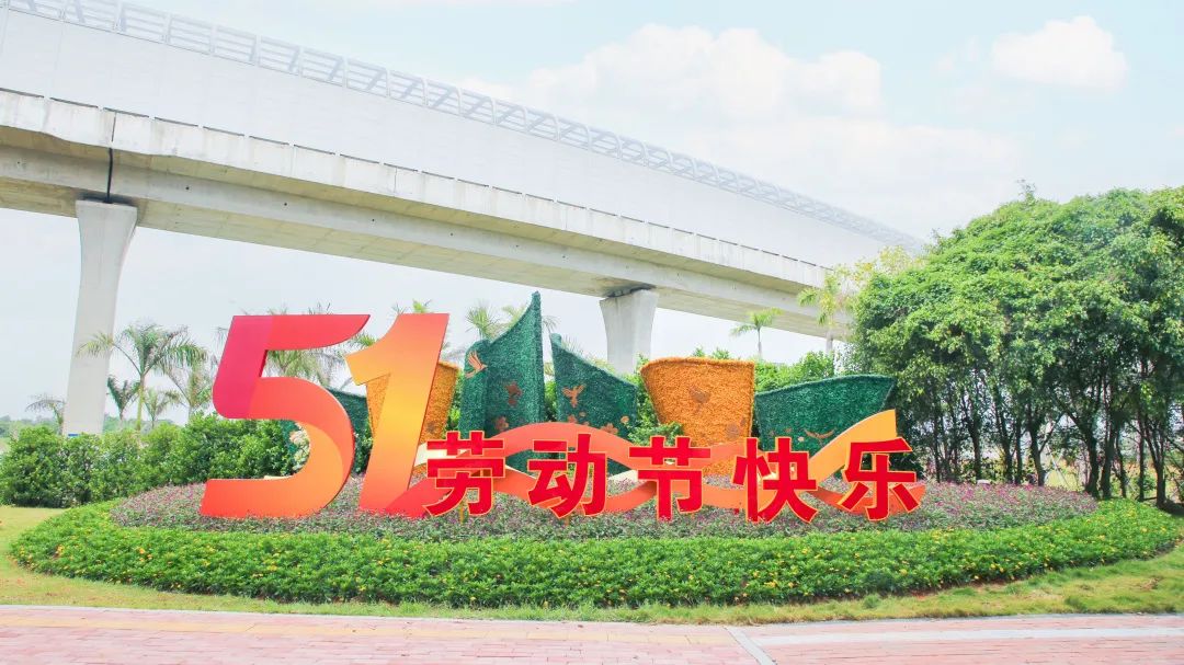 橫琴二橋市政綠地的造景則以 “51勞動節(jié)快樂” 為主題,精心搭配千日紅、木春菊等特色花卉,打造出繽紛絢麗的節(jié)日花境。這一抹亮色不僅為城市道路增添了靈動色彩,給過往的行人和車輛帶來視覺上的享受,同時也傳遞出對每一位辛勤勞動者的崇高敬意和美好祝福。