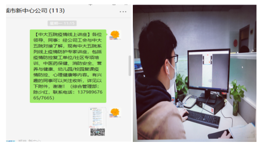 為進一步做好疫情防控工作,提升職工疫情防控知識及提高心理調適能力,城市新中心公司工會與中大五院健康管理科聯系對接,組織職工收聽中大五院疫情防護系列專家講座。