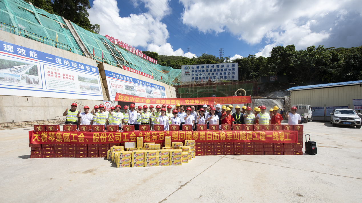 7月23日上午,橫琴新區總工會副主席、大橫琴集團黨委書記、工會主席田偉帶隊赴橫琴先進智能計算平臺項目及橫琴黑白面將軍山隧道工程項目開展夏日送清涼慰問活動。