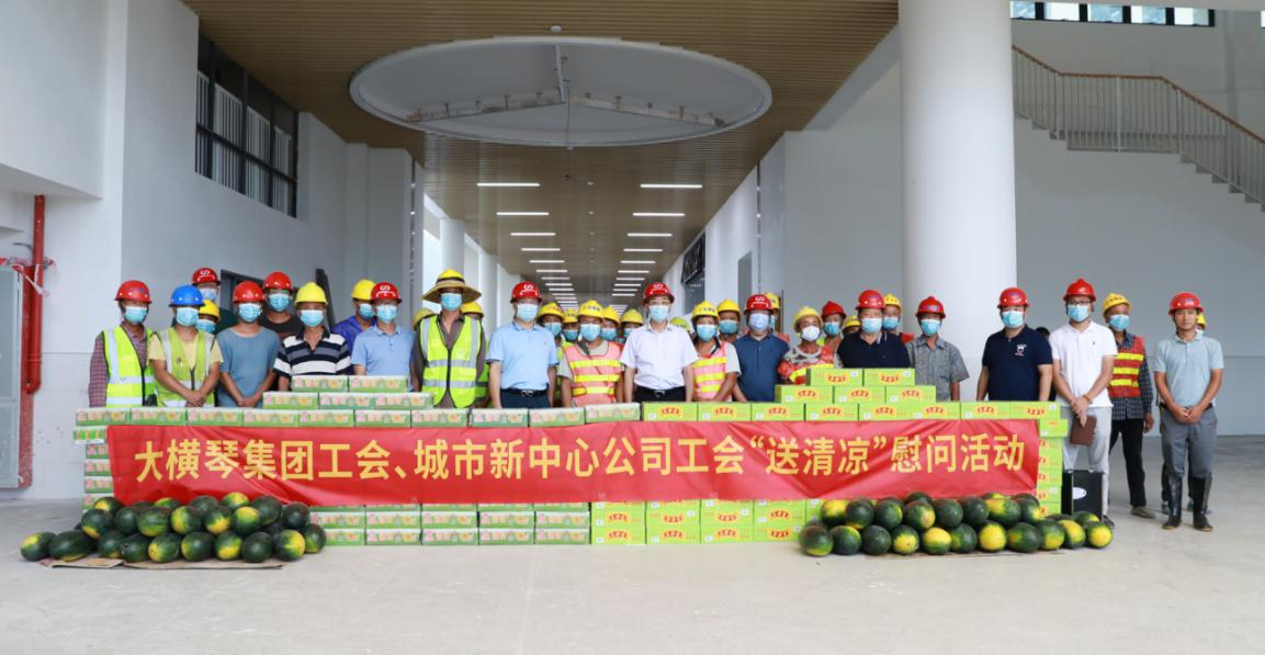 2021年7月,大橫琴集團黨委書記、工會主席田偉帶隊分別赴科學城(二期)標段一、標段二項目、橫琴醫院項目、橫琴新區子期幼兒園和小學及保稅一小工程項目開展夏日送清涼慰問活動。